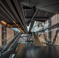 AE interests: The long museum west bund in Shanghai china it was made by the transformation of an old coal bunker. The idea was to preserve as much as possible the precedent structure and it spaces, that is why they used Steel hanging trusses supported by the old structure.