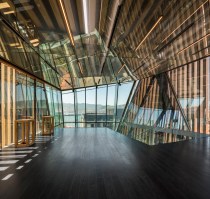 AE Interests: washi interior facade, wired Kiso hinoki cypress supported by carbon fiber, museum