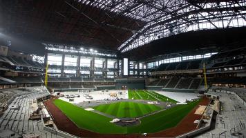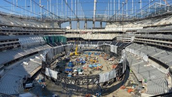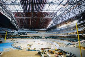 “Two nearly 800 tons of steel arch supporting the frame of the building are over 100 meters long.”